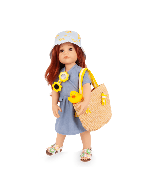- Produkt: Hannah Little Duck - rood haar - bruine ogen - 50 cm - 9-delig