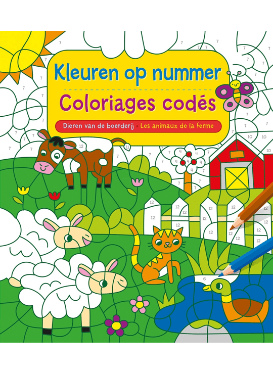 - Product: Dieren van de boerderij - Kleuren op nummer / Les animaux de la ferme - Coloriages codés -