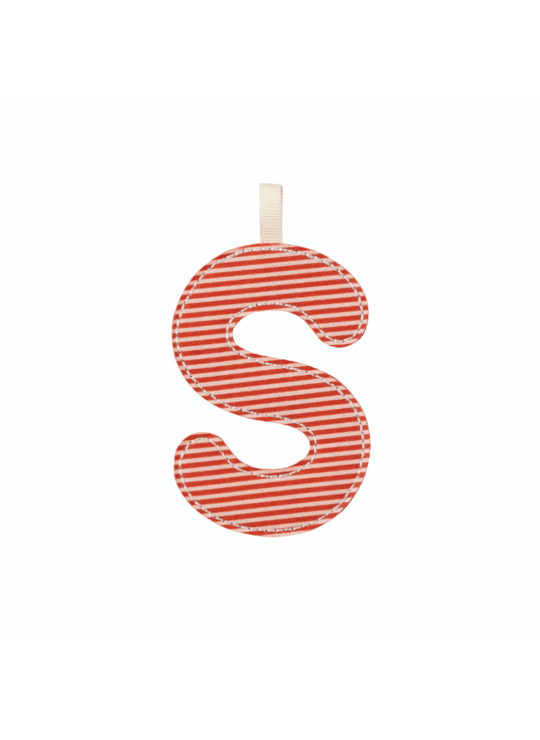 Deze decoratieve stoffen letter is ideaal om de kinderkamer te personaliseren. Hij is prachtig rood met strepen. Het bijzondere aan deze stoffen letter S is de fosforescerende stiksels die in het donker oplichten en een vleugje magie toevoegen.
