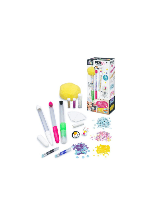 Vul de pennen en markeerstift met alle versieringen en kies dan een figuurtje of pompon. Het is magisch!