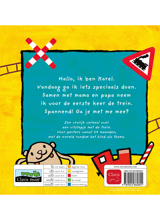 Hallo, ik ben Karel. Vandaag ga ik iets speciaals doen. Samen met mama en papa neem ik voor de eerste keer de trein. Spannend! Ga je met me mee? Een vrolijk verhaal over een uitstapje met de trein.