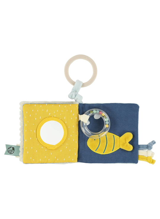 Verhaaltjes onderweg worden zo wel heel leuk! Hang het prachtige boekje van Mr. Shark aan je wandelwagen, winkelkarretje of autozitje. Zo geniet je kleintje overal van de vrolijke kleuren, boeiende texturen en ratelkralen. Je baby betast de verschillende stofjes, kijkt in het spiegeltje en droomt weg bij de vele kleuren en prachtige illustraties. En jij kijkt ondertussen verbaasd toe hun snel die fijne motoriek erop vooruitgaat!