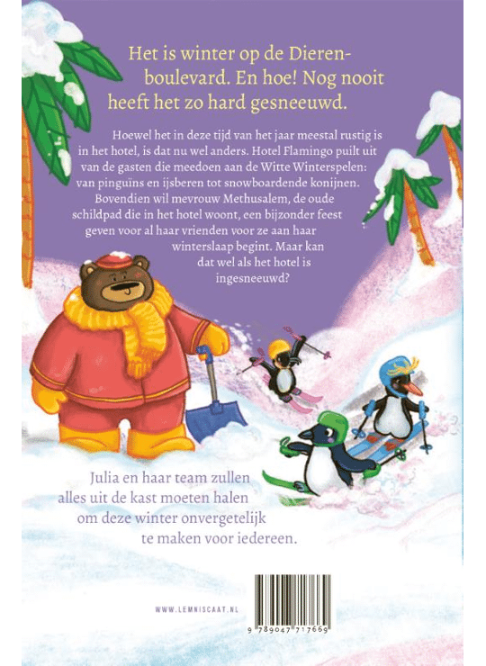 Bovendien wil mevrouw Methusalem, de oude schildpad die in het hotel woont, een bijzonder feest geven voor al haar vrienden voor ze aan haar winterslaap begint. Maar kan dat wel als het hotel is ingesneeuwd?